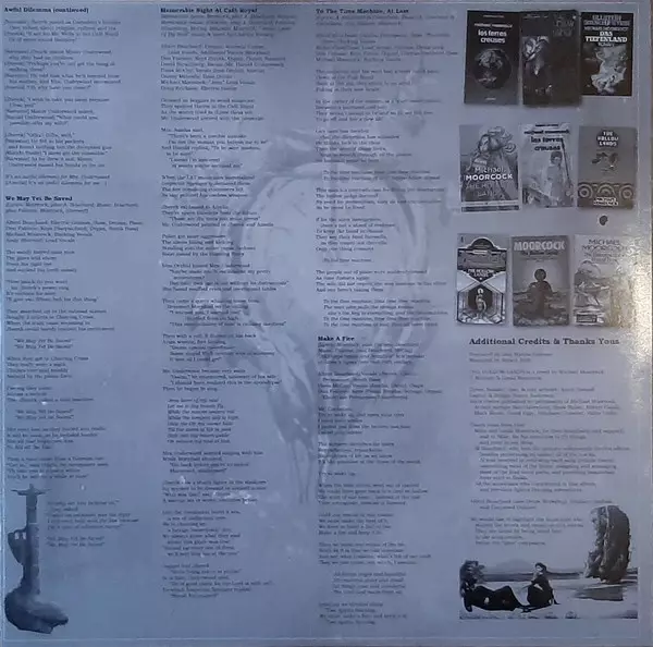 Bass, Guitar [Mid-Section Reverb], Harp Lux Vibratus | Choir Michael Moorcock | Drums Ron Howden | Guitar Andrew Scott (12) | Lyrics By Michael Moorcock | Lyrics By [Plus] Albert Bouchard | Music By Andrew Scott (12), Eric Bloom, Lux Vibratus, Ron Howden | Music By [Plus] Albert Bouchard, Bridget Wishart, Dana McCoy, David Hirschberg, Don Falcone, Michael Moorcock | Organ Don Falcone | Vocals [Jherek Carnelian] Albert Bouchard | Vocals [Maude Emily] Bridget Wishart | Vocals [Mr. Harold Underwood] David Hirschberg | Vocals [Mrs. Amelia Underwood] Dana McCoy | Vocals [Narrator] Eric Bloom
