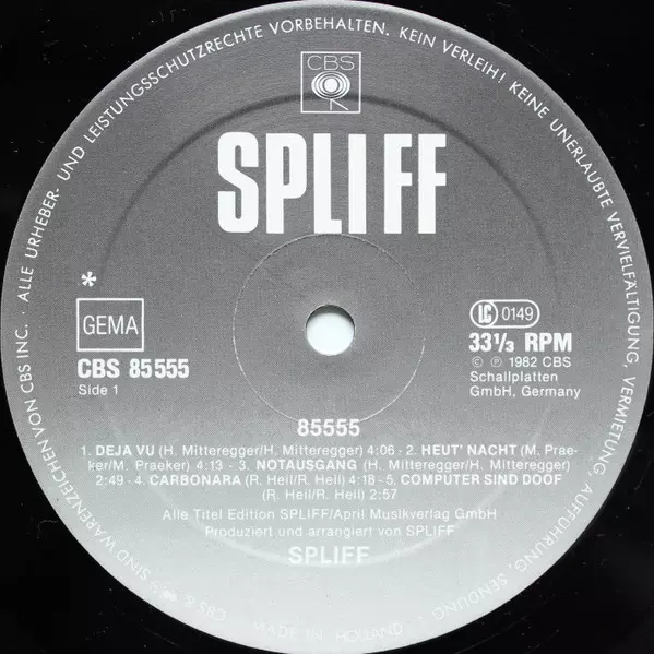 Spliff: 85555 version on vinyl LP in Standard edition. This particular edition was published in Germany in publishing company CBS year 1982. Album spans genres Rock and New Wave.