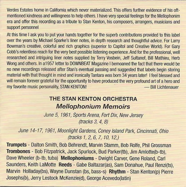 Stan Kenton And His Orchestra: Mellophonium Memoirs version on CD in Standard edition. This particular edition was published in USA in publishing company Tantara (4) on 8. December 2017. Album spans genres Jazz and Big Band.