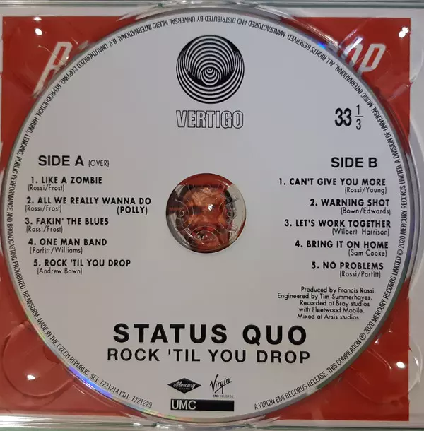 Rock 'Til You Drop (1991) is expanded to three-CD deluxe edition. The bonus content includes B-sides, 12-inch mixes, edits, outtakes, live performances and more. It comes with booklets with new interviews with Francis Rossi and members of the band by Quo guru Dave Ling in which they discuss the making of the records.