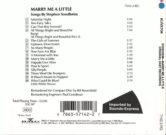 | Title | Marry Me A Little (Original Cast Recording) |