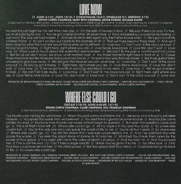 Backing Vocals Jillian Edwards, Steven Curtis Chapman | Mixed By Nick Radovanovic | Piano Micah Kuiper, Steven Curtis Chapman | Producer Bryan Fowler, Micah Kuiper, Steven Curtis Chapman | Written-By Bryan Fowler, Mary Beth Chapman, Micah Kuiper, Steven Curtis Chapman