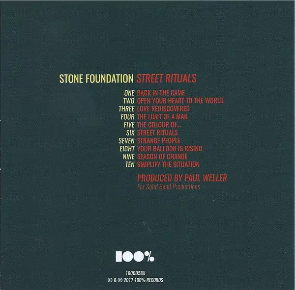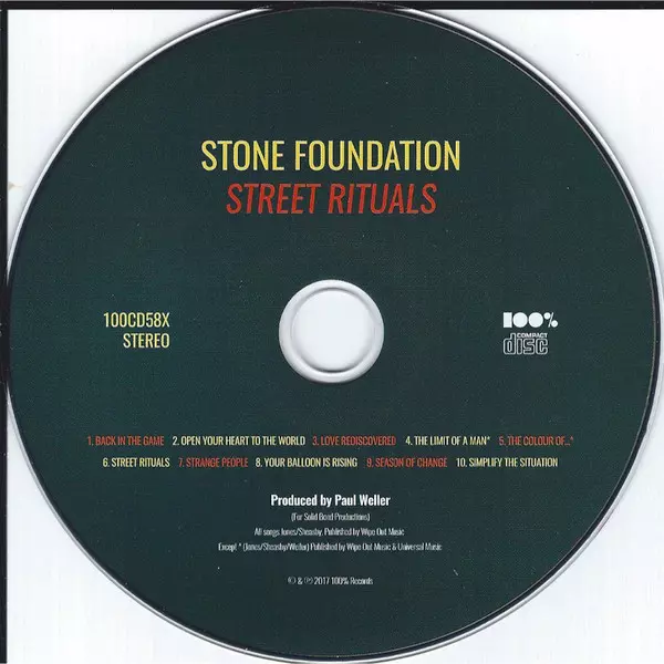 Stone Foundation: Street Rituals DLX version on CD/DVD in deluxe edition. This particular edition was published in United Kingdom in publishing company 100% Records (2) on 21. April 2017. Album spans genres Funk / Soul and Soul.