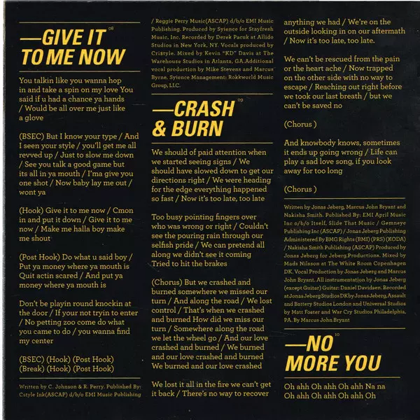Management [Syience Management] Rokkworld Music Group, LLC | Mixed By Kevin Davis | Producer Syience | Producer [Additional Vocal Production By] Marcus Byrne, Mike Stevens | Producer [Vocals Produced By] Crystal Johnson | Recorded By Derek Pacuk | Written-By Crystal Johnson, Reggie Perry