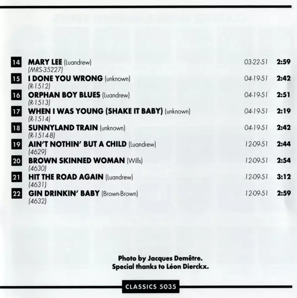 | 20 | Sunnyland Slim: Brown Skinned Woman | 2:54 min | |