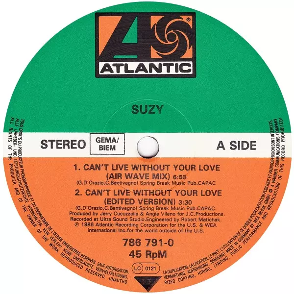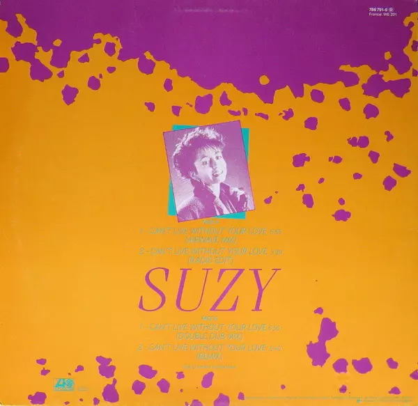 Suzy Q: Can't Live Without Your Love version on vinyl LP in 45 RPM edition. This particular edition was published in France in publishing company Atlantic on 6. July 2016. Album spans genres Electronic, Disco and Hi NRG.