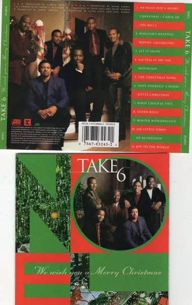 Take 6: We Wish You A Merry Christmas version on CD in Standard edition. This particular edition was published in USA in publishing company Atlantic in cooperation with Reprise Records on 12. December 2020. Album spans genres Pop, Folk, World, & Country, Jazz, Funk / Soul, Vocal, Folk, Spoken word, Easy listening, Gospel, Dialogue, Speech and Christmas.