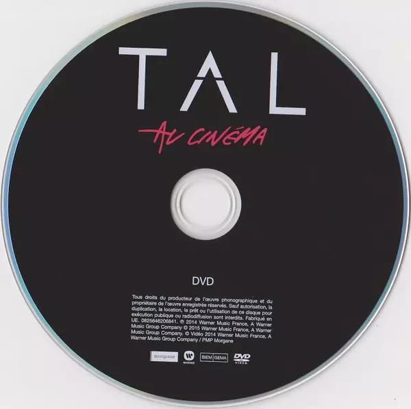 Tal: Tal Au Cinéma version on DVD in Standard edition. This particular edition was published in France in publishing company Warner in cooperation with Morgane Groupe on 4. May 2015. Album spans genres Pop, Stage & Screen, Funk / Soul and Chanson.