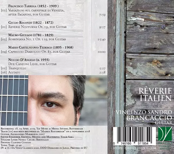 | Artist | Francisco Tárrega | Mario Castelnuovo Tedesco | Mauro Giuliani | Giulio Regondi | Vincenzo Sandro Brancaccio | Nuccio D'Angelo |