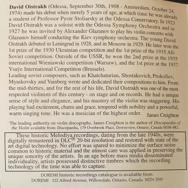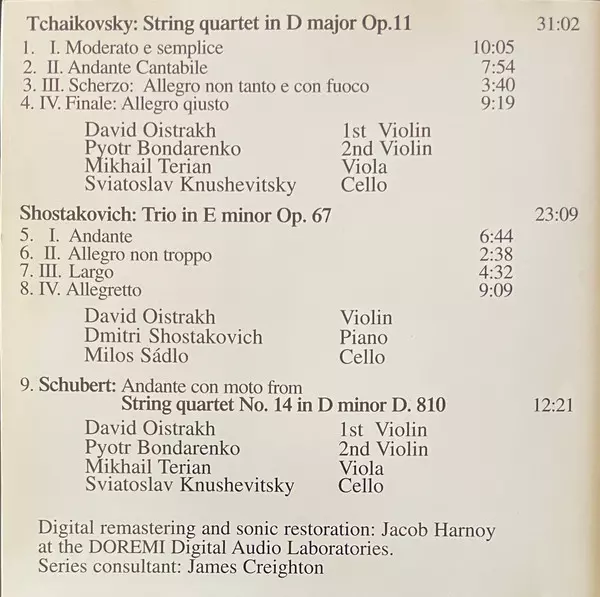 | Artist | Pyotr Ilyich Tchaikovsky | Dmitri Shostakovich | Franz Schubert | David Oistrach |