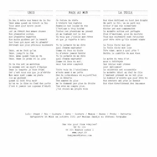 | Labels | Une Vie Pour Rien ? |