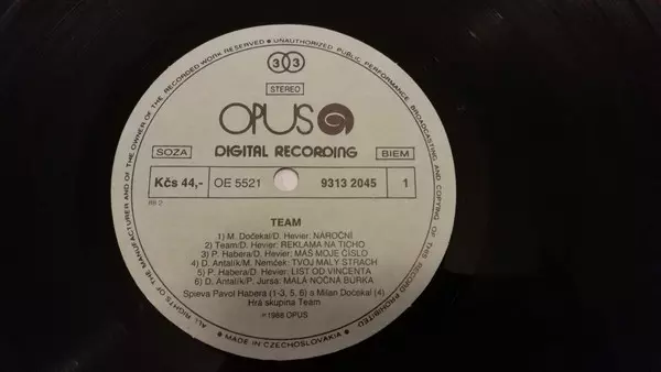 Team: Team version on vinyl LP in Standard edition. This particular edition was published in Czechoslovakia in publishing company Opus year 1988.