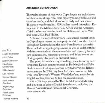| Artist | Paul Hillier | Terry Riley | Ars Nova Copenhagen | Percurama Percussion Ensemble |