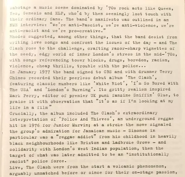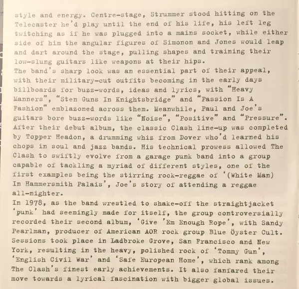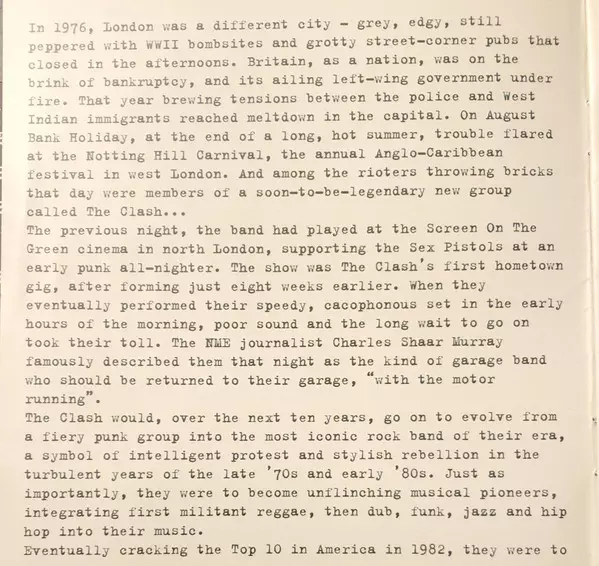 No other band in the British punk movement has caused such a stir as The Clash. The list of pioneering feats by the quartet, with charismatic frontmen Joe Strummer and Mick Jones, is as long as it is legendary: they were the first British punk band to land a record deal with a "major label". They were the first band on the scene to hit the US ch...