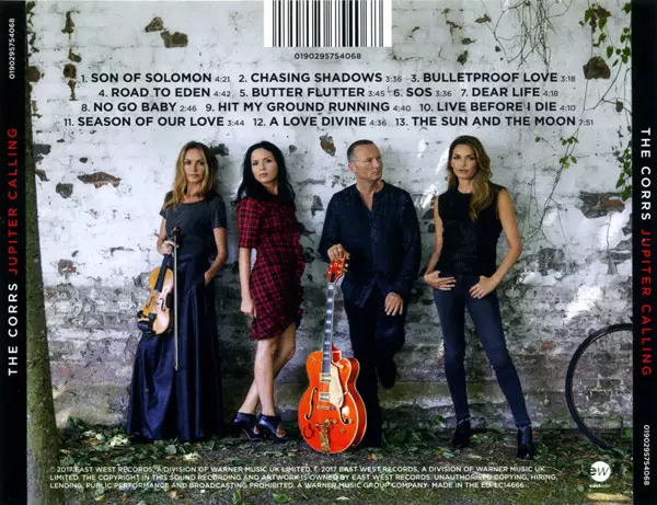 The Corrs: Jupiter Calling version on CD in Standard edition. This particular edition was published in Europe and UK in publishing company EastWest on 17. November 2017. Album spans genres Pop, Folk, World, & Country, Balad and Celtic.