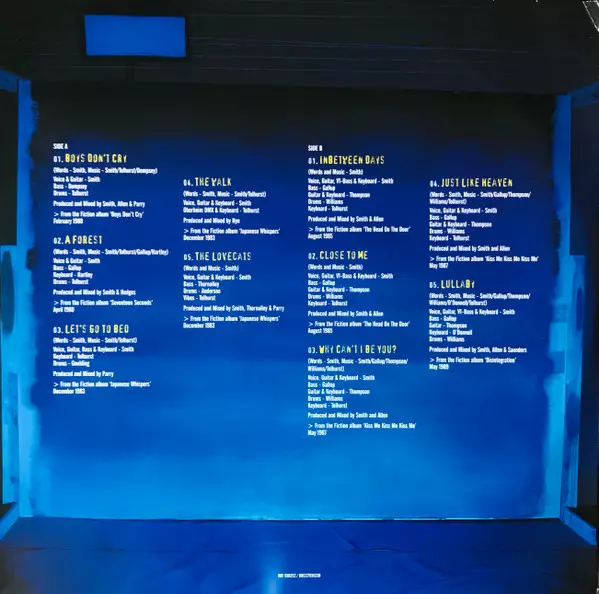 Mixed By Chris Parry, Mark Saunders, Robert Smith | Music By, Bass Simon Gallup | Music By, Drums Boris Williams | Music By, Guitar Porl Thompson | Music By, Instruments [Other] Laurence Tolhurst | Music By, Keyboards Roger O'Donnell | Producer David M. Allen, Robert Smith | Words By, Music By, Voice, Guitar, Keyboards Robert Smith