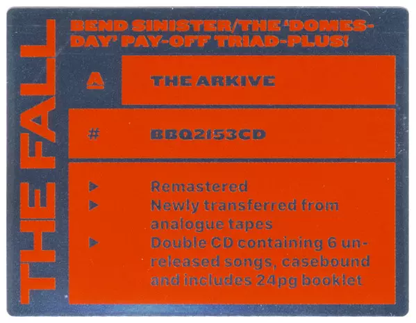 The Fall: Bend Sinister / The :Domesday Pay-Off Triad-Plus! version on 2CD in Remastered edition. This particular edition was published in United Kingdom in publishing company Beggars Banquet in cooperation with Beggars Arkive on 15. March 2019.