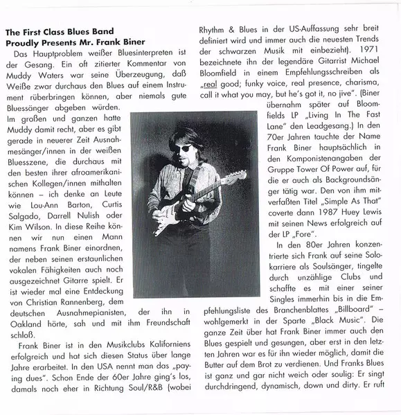 | Title | The First Class Blues Band Proudly Presents Mr. Frank Biner |