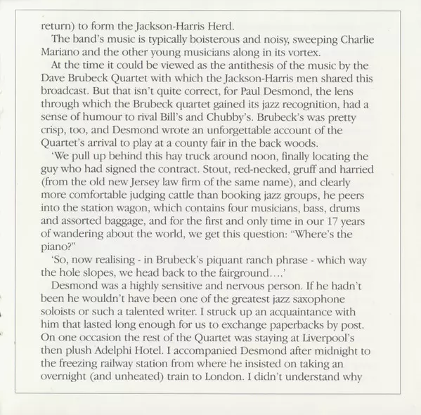 | Artist | The Dave Brubeck Quartet | Paul Desmond | The Jackson-Harris Herd |
