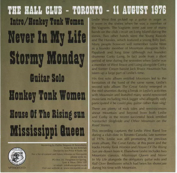 Artist | The Leslie West Band |