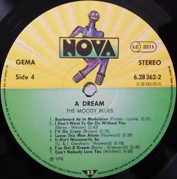 The Moody Blues: A Dream version on vinyl 2LP in Standard edition. This particular edition was published in Germany in publishing company Nova (6) year 1976. Album spans genres Rock, Folk Rock, Psychedelic rock and Classic Rock. Gatefold Vinyl.