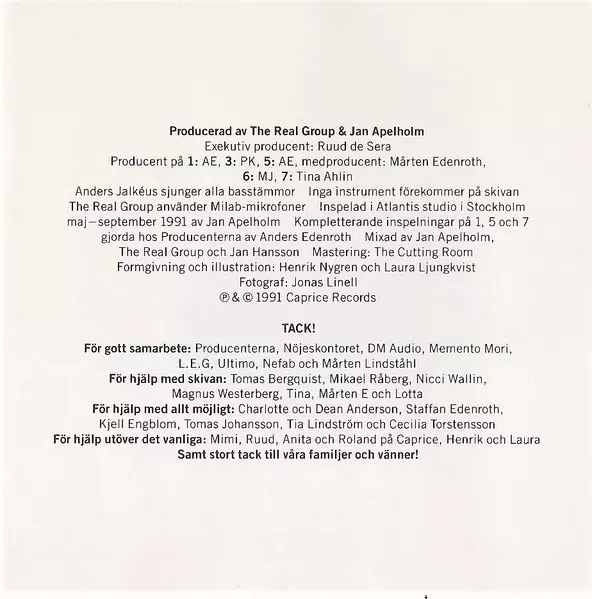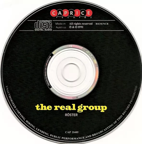 The Real Group: Röster version on CD in Standard edition. This particular edition was published in Sweden in publishing company Caprice Records on 27. September 1994. Album spans genres Pop, Jazz and Vocal.