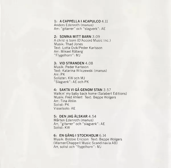 Arranged By, Solo Vocal, Solo Vocal ["Flygelhorn"], Producer Margareta Jalkéus | Lyrics By Beppe Wolgers | Music By Bobbie Ericson