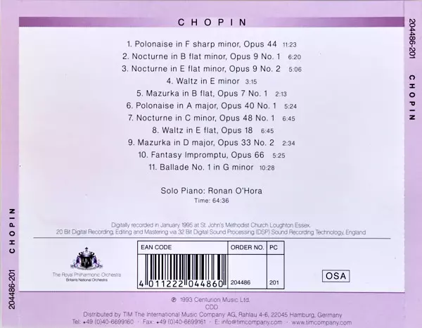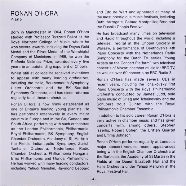 | Artist | Frédéric Chopin | Royal Philharmonic Orchestra | Ronan O'Hora |