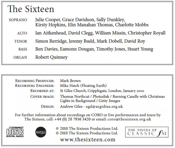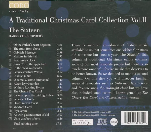 The Sixteen: A Traditional Christmas Carol Collection Volume II version on CD in Standard edition. This particular edition was published in Europe in publishing company CORO (2) on 25. November 2010. Album spans genres Classical and Folk, World, & Country.