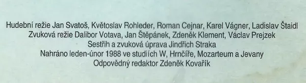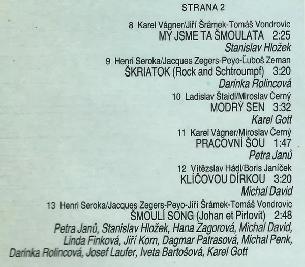 Lyrics By [Czech] Jiří Šrámek, Tomáš Vondrovic | Vocals Dagmar Patrasová, Darina Rolincová, Hana Zagorová, Iveta Bartošová, Jiří Korn, Josef Laufer, Karel Gott, Linda Finková, Michal David, Michal Penk, Petra Janů, Stanislav Hložek | Written-By Henri Seroka, Jacques Zegers