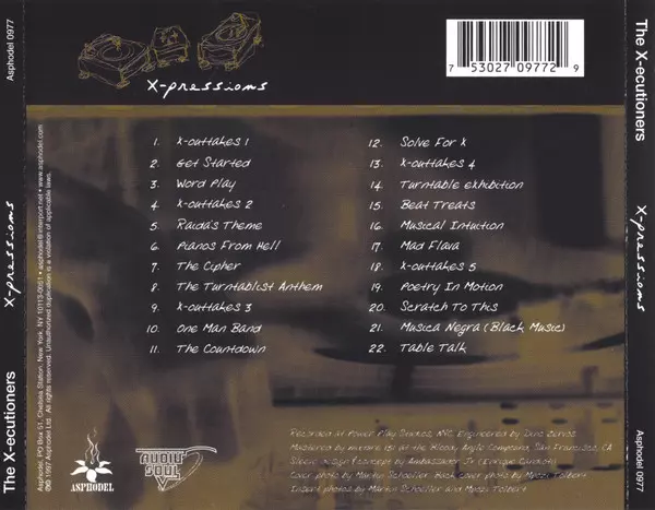 The X-Ecutioners: X-Pressions version on CD in Standard edition. This particular edition was published in USA in publishing company Asphodel in cooperation with Audio Soul on 31. May 2019. Album spans genres Hip Hop, Cut-up/DJ, Turntablism and Boom Bap.