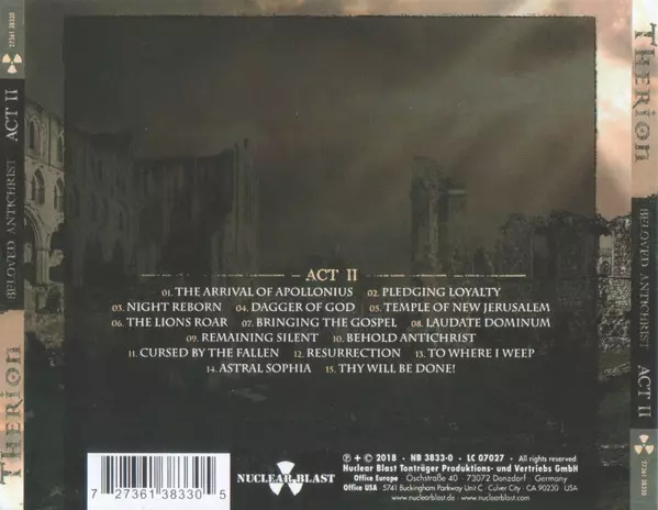 Therion: Beloved Antichrist version on 3CD in Standard edition. This particular edition was published in Europe in publishing company Nuclear Blast on 23. March 2018. Album spans genres Rock, Gothic Metal and Symphonic metal.