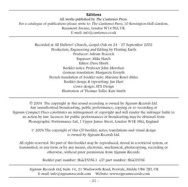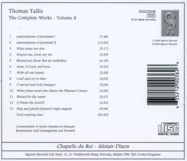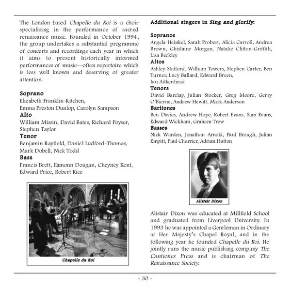 | Artist | Thomas Tallis | Chapelle Du Roi | Alistair Dixon |