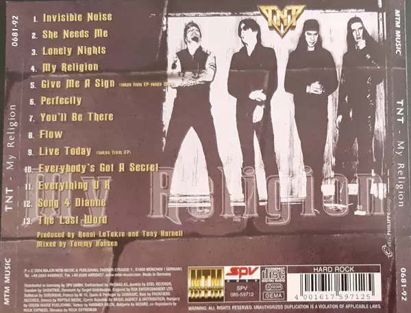TNT: My Religion version on CD in Standard edition. This particular edition was published in Europe in publishing company MTM Music on 1. June 2009. Album spans genres Rock and Hard Rock.
