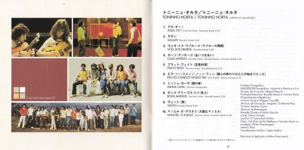 Acoustic Guitar, Vocals Toninho Horta | Coro Alberto Rosenblit, Carlinhos Menezes, José Renato, Mario Adnet, Mario Castelo, Zézinho | Drums Robertinho Silva | Electric Bass Jamil Joanes | Piano, Organ, Synthesizer [Arp Omni] Wagner Tiso | Trombone Raul De Souza | Written-By Fernando Brant, Ronaldo Bastos, Toninho Horta