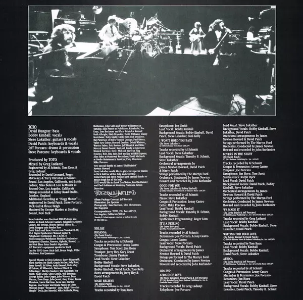 Backing Vocals Bobby Kimball, Steve Lukather, Timothy B. Schmit | Congas, Percussion Lenny Castro | Lead Vocals, Backing Vocals David Paich | Marimba, Percussion Joe Porcaro | Recorder Jim Horn | Written-By David Paich, Jeff Porcaro