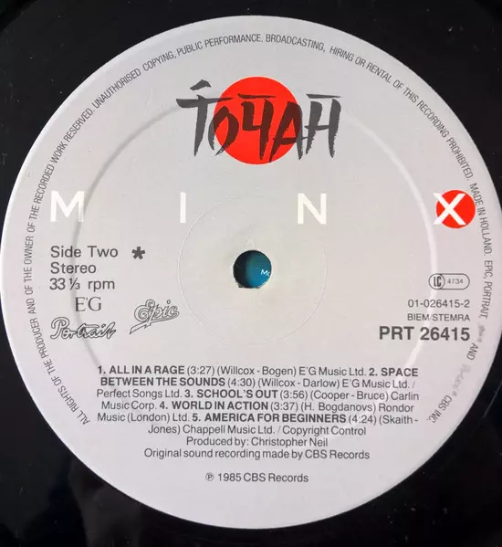 Toyah: Minx version on vinyl LP in Standard edition. This particular edition was published in Netherlands in publishing company Portrait on 22. February 2011. Album spans genres Electronic and Synth-pop.