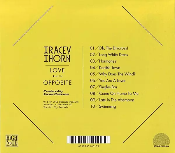 Tracey Thorn: Love And Its Opposite DIGI version on 2CD in digipack edition. This particular edition was published in Taiwan in publishing company High Note Records in cooperation with Strange Feeling on 22. June 2010. Album spans genres Pop, Electronic, Vocal, Indie Pop and Novelty.