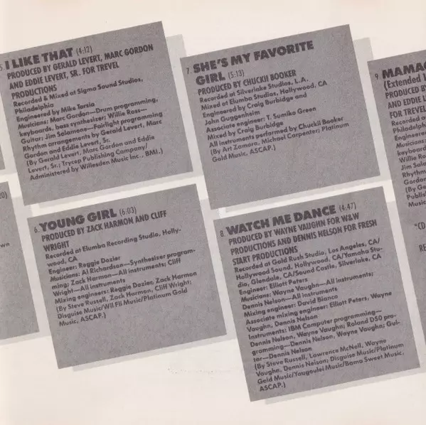 Engineer Michael Tarsia | Guitar Willie Ross (2) | Producer Eddie Levert, Gerald Levert | Producer, Drum Programming, Keyboards, Bass [Synth] Marc Gordon | Programmed By [Fairlight Programming] Jim Salamone | Written-By Eddie Levert, Gerald Levert, Marc Gordon