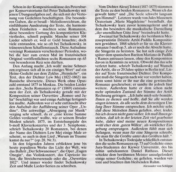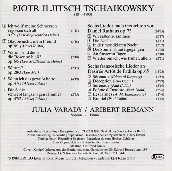 | Artist | Pyotr Ilyich Tchaikovsky | Iulia Várady | Aribert Reimann |
