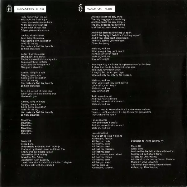 Engineer [Assisted By], Mixed By [Assisted By] Chris Heaney | Engineer, Mixed By Richard Rainey | Guitar [Additional] Daniel Lanois | Lyrics By Bono | Synthesizer Brian Eno