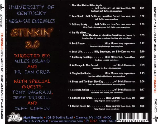 | Artist | University of Kentucky Mega-Sax Quartet | Miles Osland | Ian Cruz | Tony Dagradi | Jeff Driskill | Jeff Coffin |