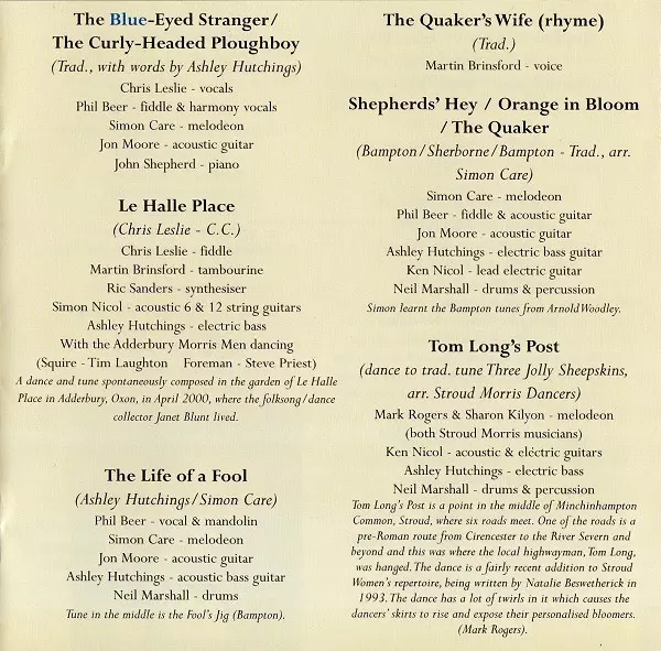 Acoustic Guitar Phil Beer | Arranged By, Melodeon Simon Care | Drums Jim Walker (9) | Electric Bass Ashley Hutchings | Electric Guitar Jon Moore | Vocals Chris Leslie | Written-By Traditional