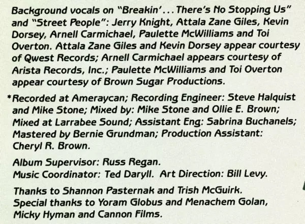 | Arranged By, Written-By Don Peake, Jerry Knight, Ollie Brown | Backing Vocals Arnell Carmichael, Attala Zane Giles, Jerry Knight, Kevin Dorsey, Paulette McWilliams, Toi Overton | Engineer [Assistant Mix] Sabrina Buchanek | Engineer [Recording] Mike D. Stone, Steve Halquist | Mixed By Mike D. Stone, Ollie Brown | Other [Production Assistant] Cheryl R. Brown | Producer Ollie Brown | |||