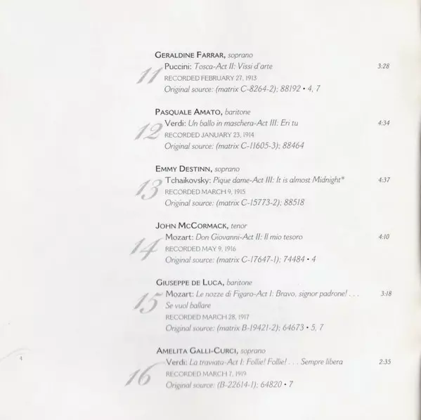 | 1-11 | Geraldine Farrar: Tosca-Act II: Vissi D'arte | 3:28 min | |