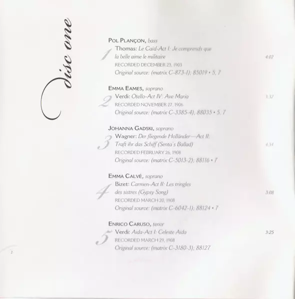 | 1-4 | Emma Calvé: Carmen-Act II: Les Tringles Des Sistres (Gypsy Song) | 3:08 min | |