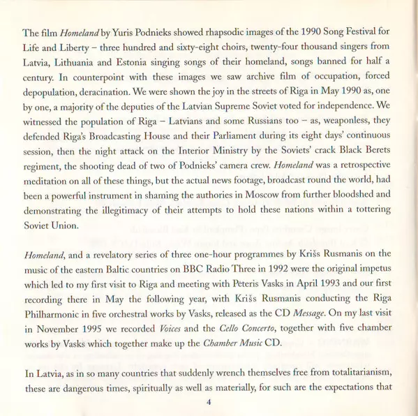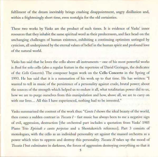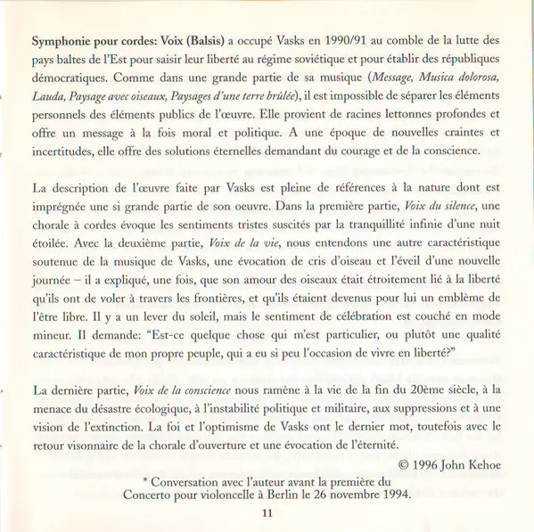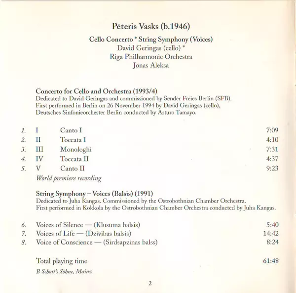 | Artist | Pēteris Vasks | David Geringas | Riga Philharmonic Orchestra | Jonas Aleksa |