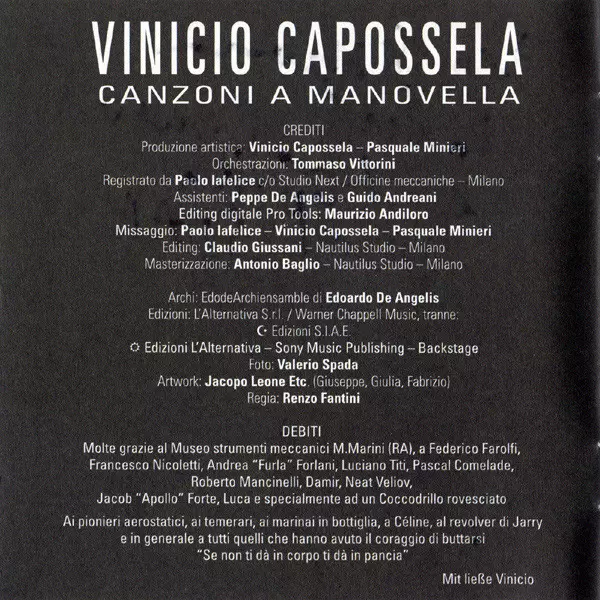Accordion Luciano Titi | Arranged By [Strings], Conductor [Strings] Tommaso Vittorini | Double Bass Enrico Lazzarini | Grand Piano Vinicio Capossela | Performer [Cineserie], Toy Piano Mirco Mariani