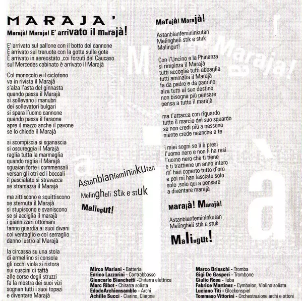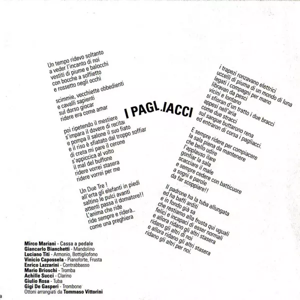 Accordion Luciano Titi | Brass Giulio Rosa, Luigi De Gaspari, Roy Paci | Cymbal, Bass Drum Mirco Mariani | Piano Vinicio Capossela