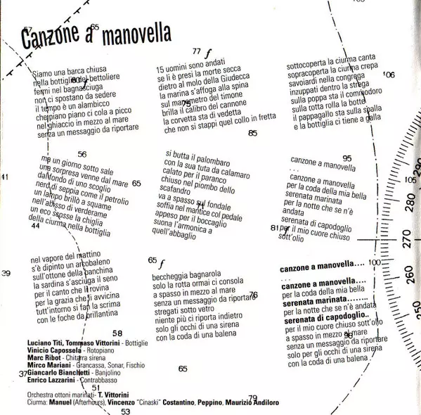 Accordion Luciano Titi | Arranged By Tommaso Vittorini, Vinicio Capossela | Double Bass Enrico Lazzarini | Drums Mirco Mariani | Grand Piano Vinicio Capossela | Guitar [Noisy Guitar] Marc Ribot | Trombone Luigi De Gaspari | Trumpet [Clarino] Achille Succi | Tuba Mario Brioschi | Violin Edoardo De Angelis (2)